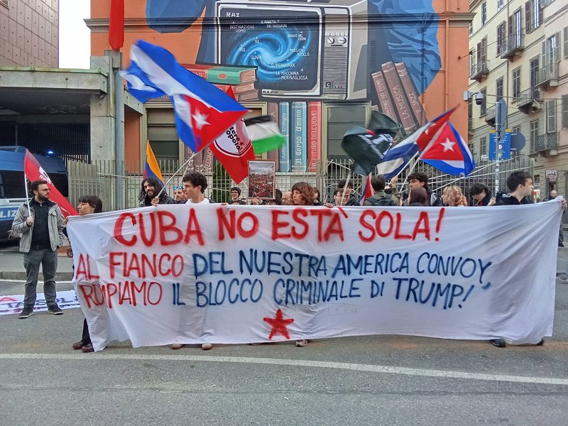 Si è svolto ieri, venerdì 20 marzo 2026, davanti alla sede RAI di Torino, un presidio partecipato e determinato a sostegno del popolo cubano e della campagna internazionale Nuestra América Convoy.